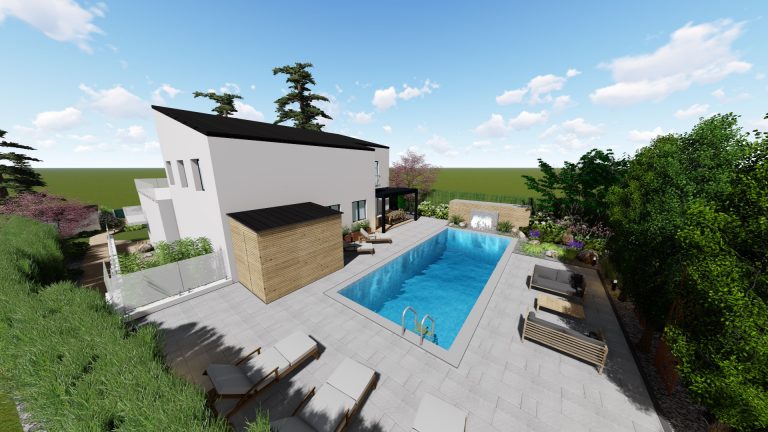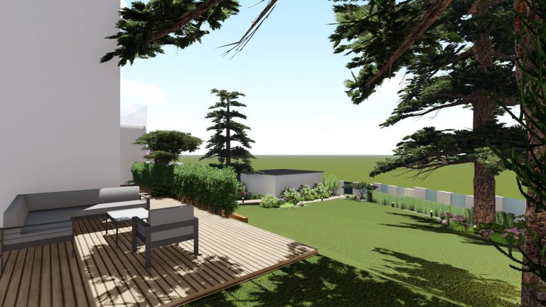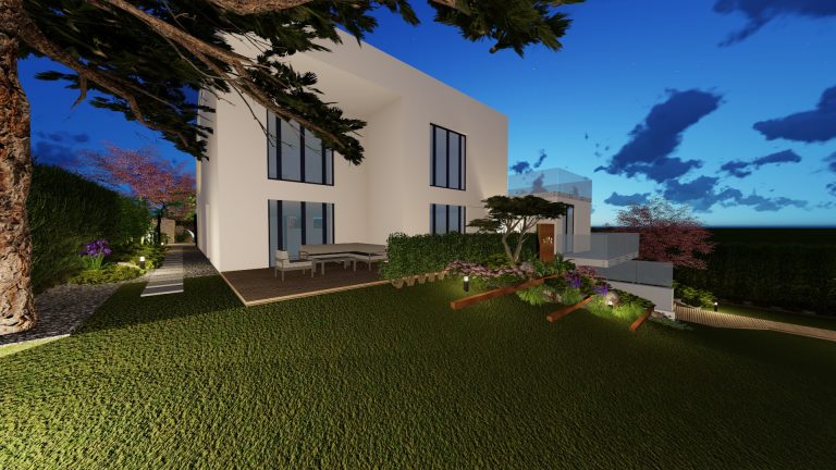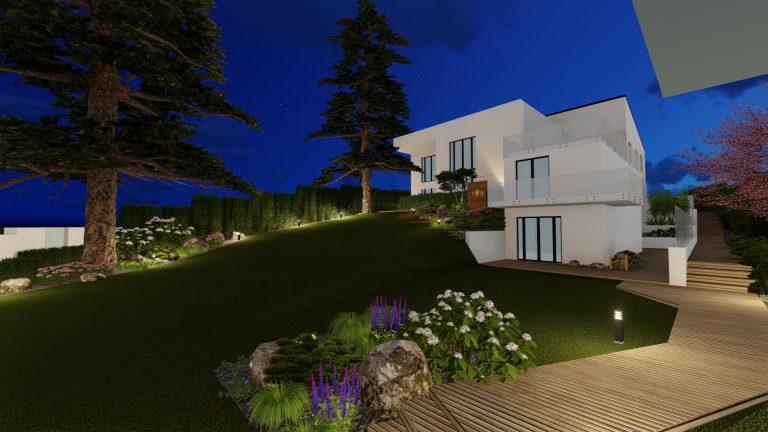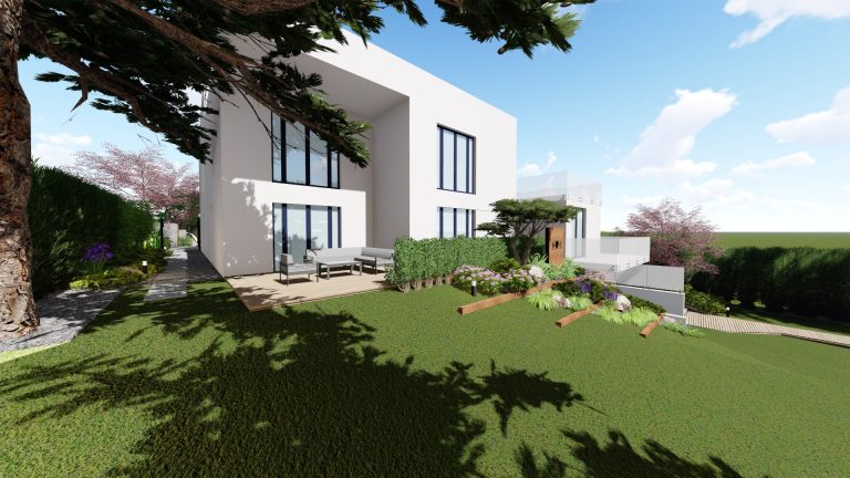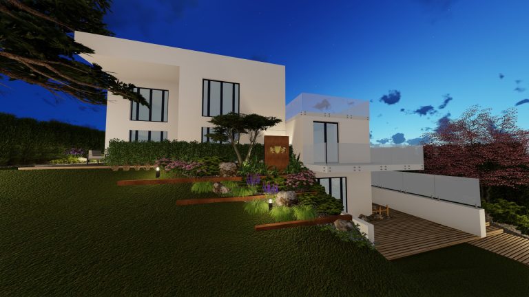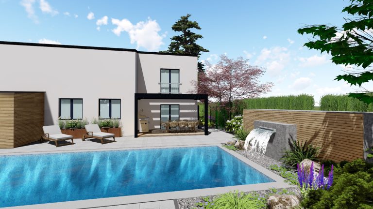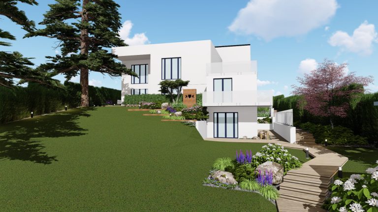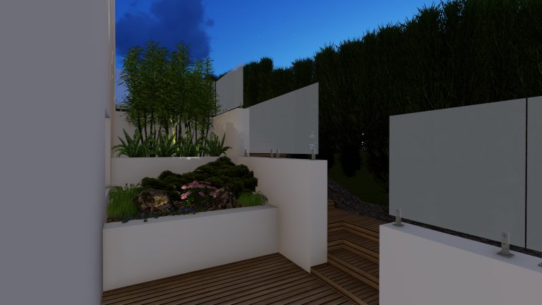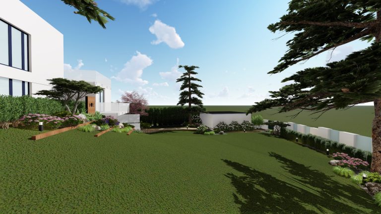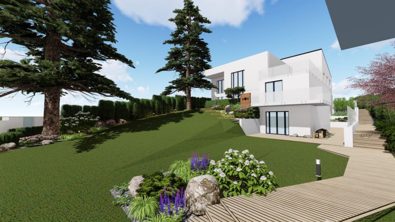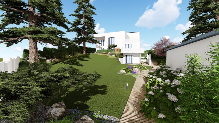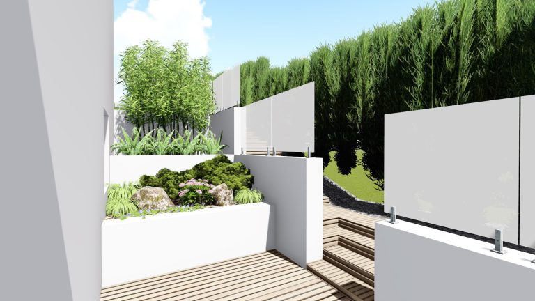 Ogród w Stuttgarcie w nowoczesnym stylu z wykorzystaniem elementów ze stali Corten.