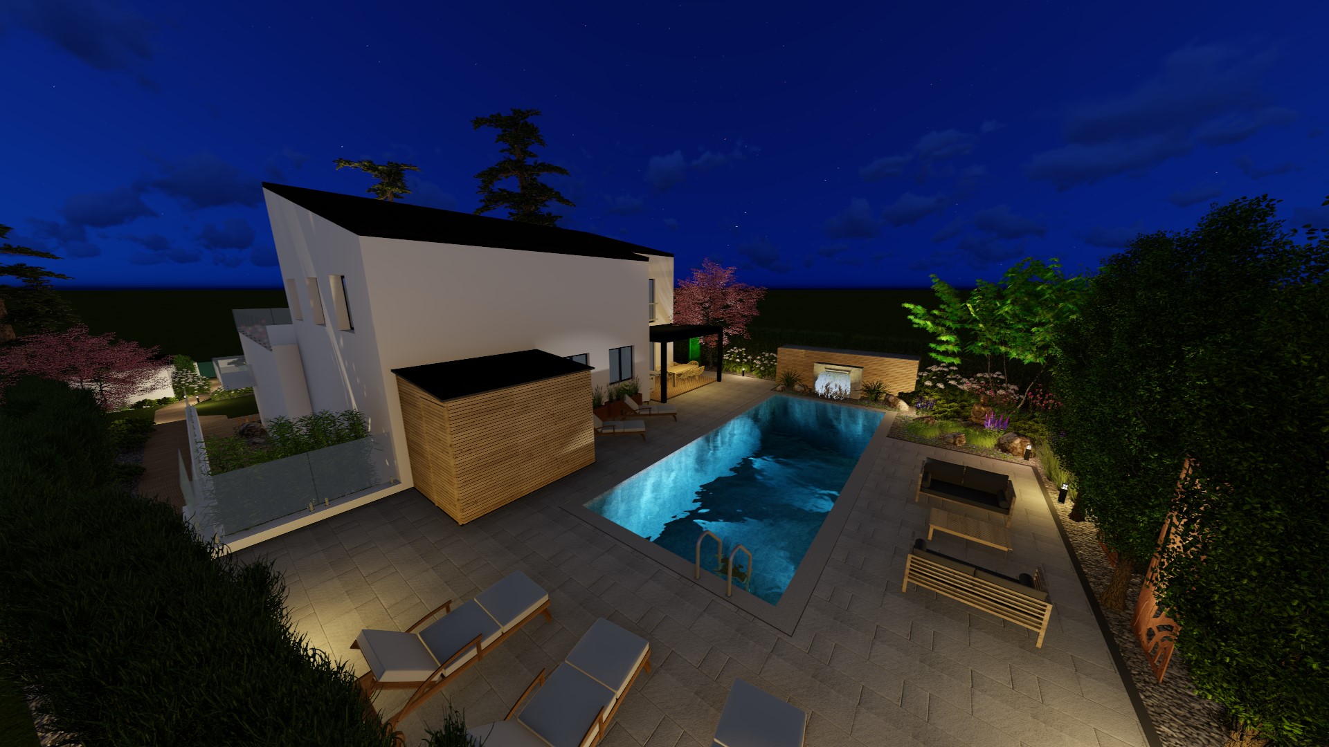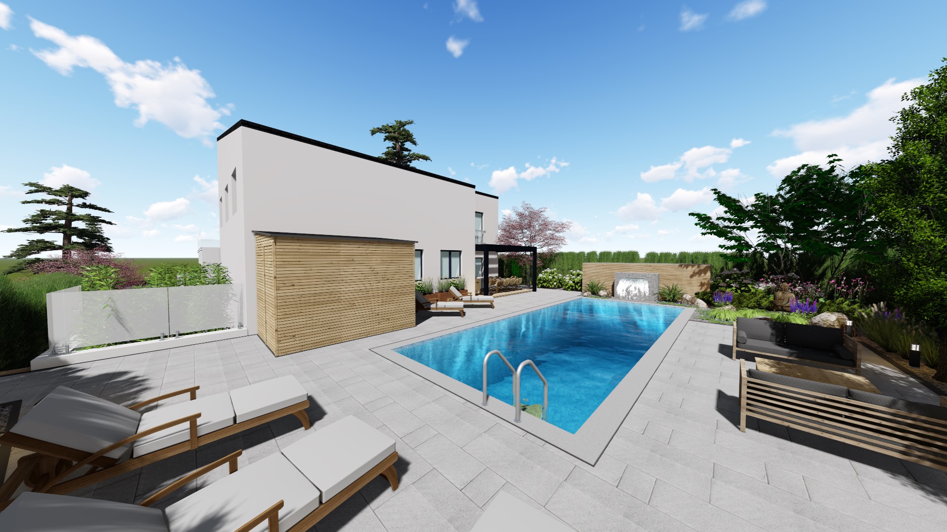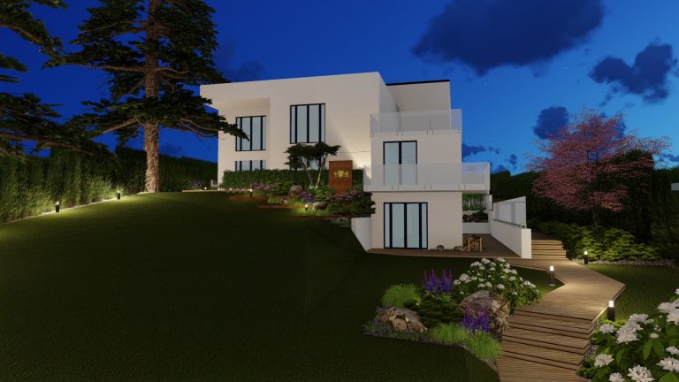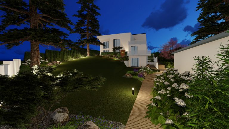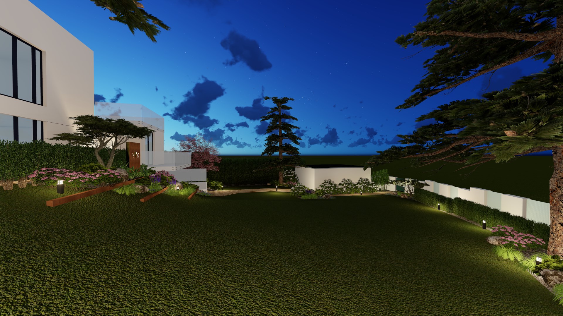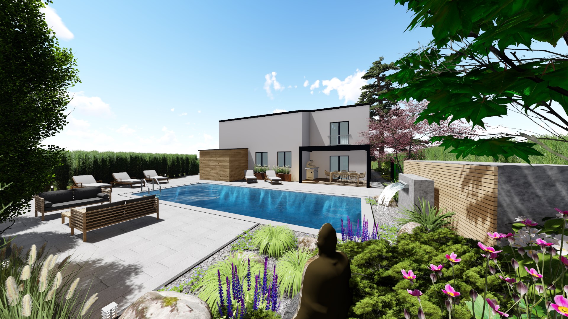 Ogród w Stuttgarcie w nowoczesnym stylu z wykorzystaniem elementów ze stali Corten.