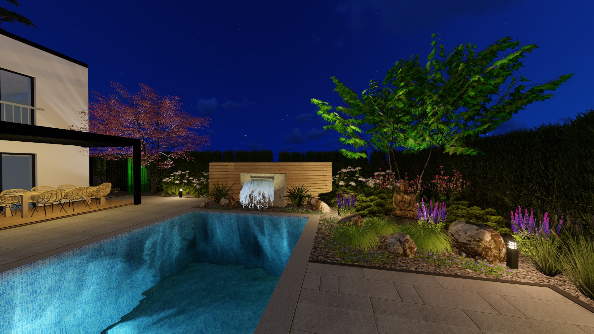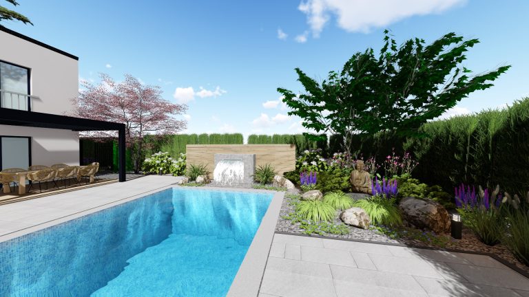 – występują nawiązania do ogrodów wschodnich/ japońskich,